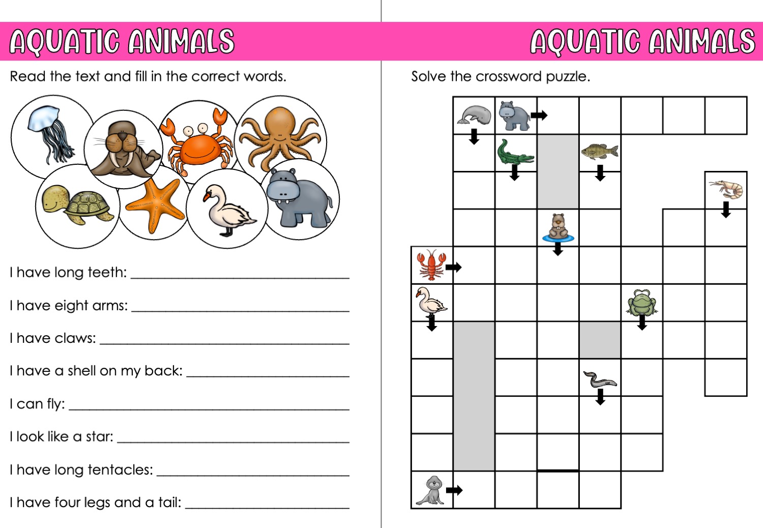 Temapaketet Aquatic animals ger dig som lärare ett färdigt och konkret upplägg för att undervisa om djur som lever i och vid vatten. Det passar perfekt för elever som behöver stärkt begreppsförståelse och ordförråd i engelska.